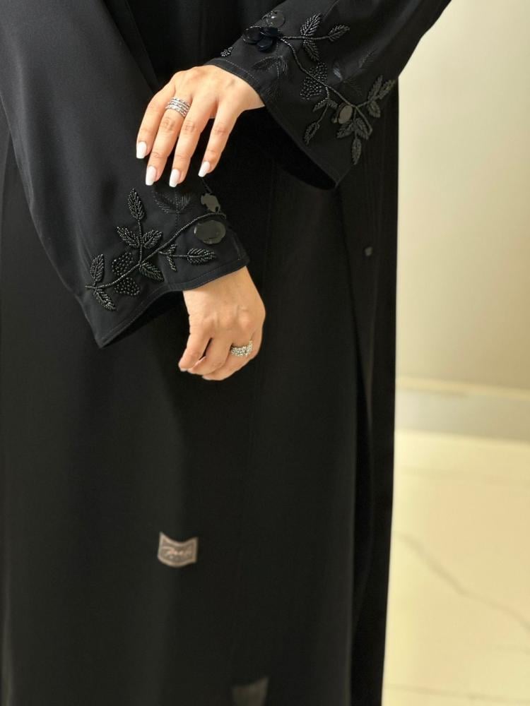 عباية قمر بتصميم ملكي يجمع بين الشك اليدوي الدقيق، والتطريز الناعم، وحبات اللؤلؤ الفاخرة لتمنحك إطلالة ساحرة لا تُنسى.