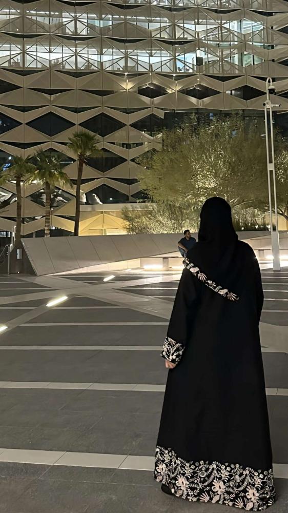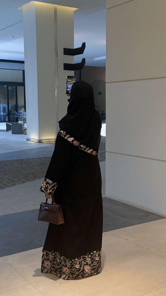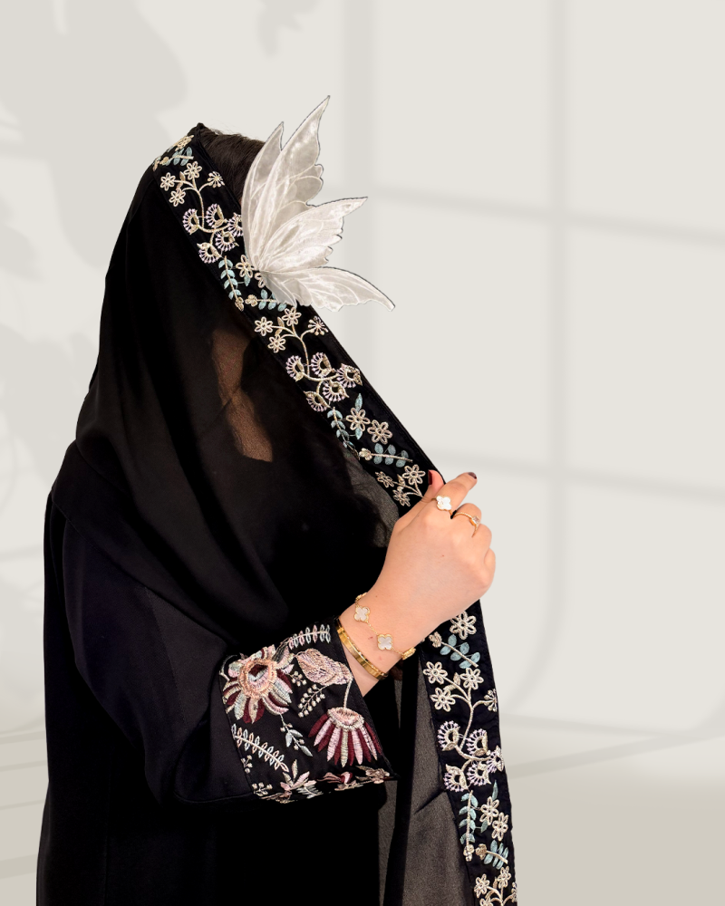 الجوهرة - عباية سوداء بتطريز زهري أنيق