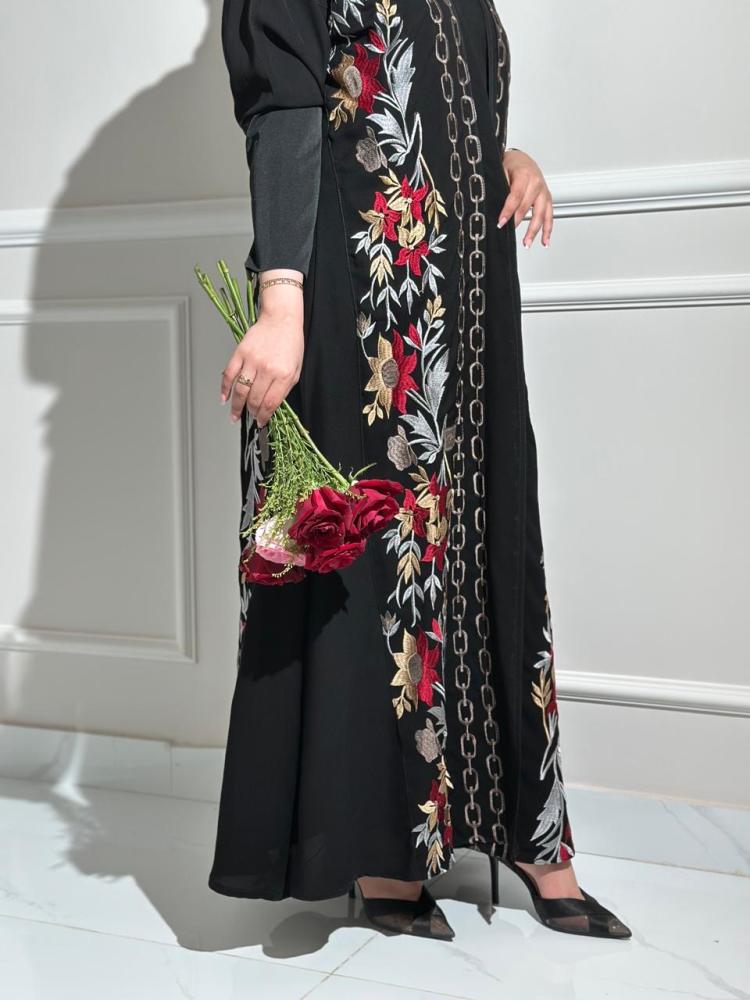 عباية سوداء فاخرة مطرزة بألوان أنيقة لتمنحك حضورًا لافتًا في كل مناسبة.