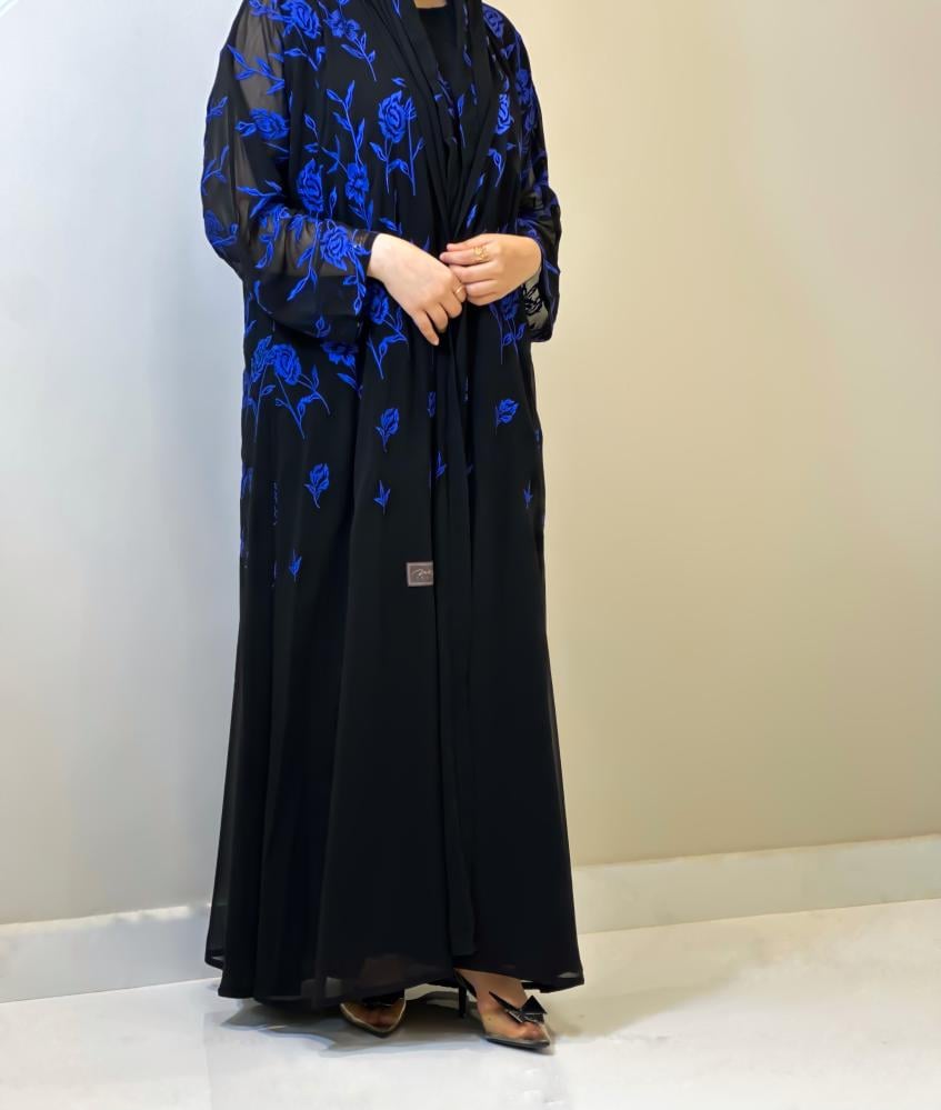 تقدم عباية ميثة تصميمًا فريدًا بقماش شيفون تطريز ازرق المميز بخفته وجودته العالية، مما يضمن لك الراحة والتميز في كل ظهور. تجمع العباية بين الأسلوب العصري والتفاصيل الدقيقة التي تضفي لمسة من الرقي والأنوثة.
