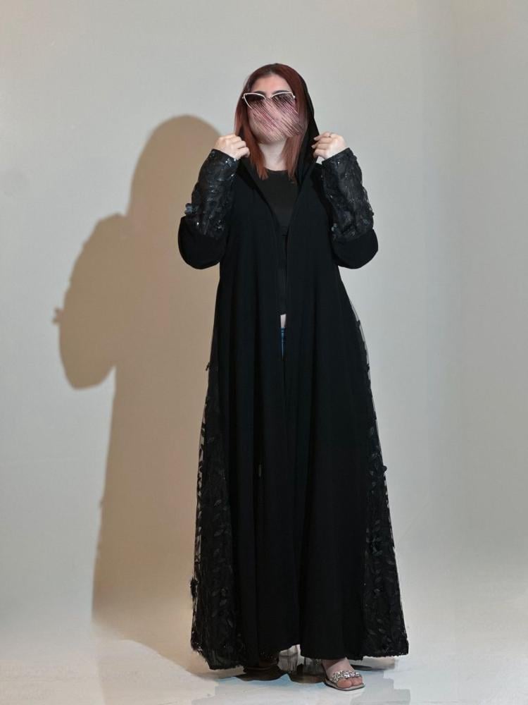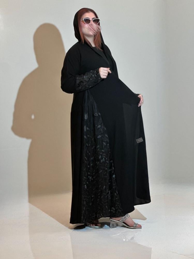 نقدّم لكم عباية سوداء بتصميم يجمع بين البساطة والأناقة، مصنوعة من قماش الكريب الناعم مع لمسات فاخرة من الدانتيل المطرّز. تزينها تطريزات أوراق رقيقة على الأكمام والحواف لتمنحها لمسة أنثوية راقية وجذّابة دون تكلف. بفضل خامتها الخفيفة، توفر العباية راحة وسهولة في الحركة، لتكون خياراً عملياً للمناسبات الرسمية و الإطلالات الراقية.